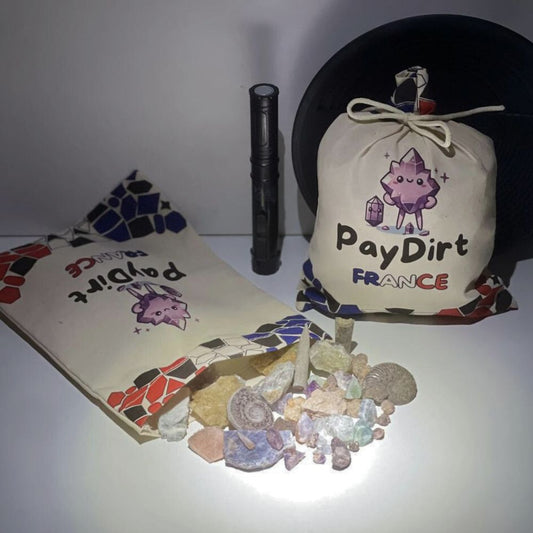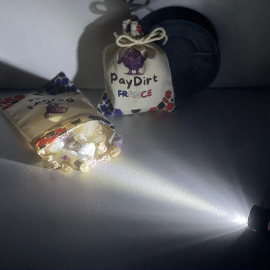 Plongez dans une aventure unique qui vous transporte au cœur des richesses de la Terre. Découvrez nos sacs PayDirt remplis de minéraux fascinants, de pierres précieuses et de surprises rares. Que vous soyez collectionneur passionné, amateur de gemmes ou simplement curieux, laissez-vous séduire par l'excitation de trouver des trésors inattendus. Préparez-vous à explorer, trier et émerveiller vos sens !