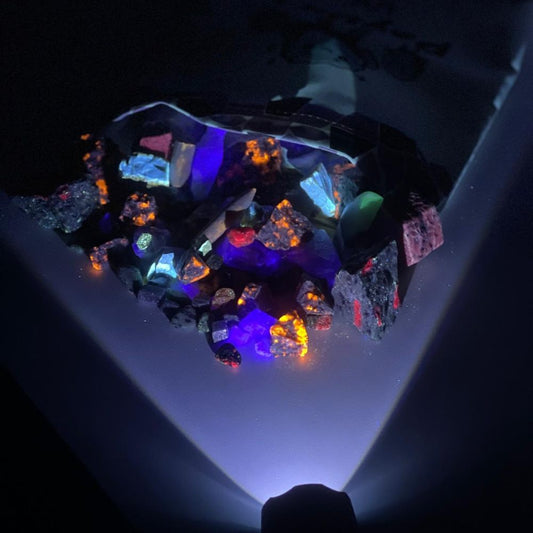 Plongez dans une chasse aux minéraux fluorescents et découvrez des pierres aux couleurs étonnantes qui s’illuminent dans l’obscurité. Une expérience unique entre ombre et lumière !